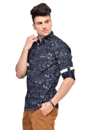 Blue printed denim shirt from Gesture Jeans, made of cotton denim, which offer good strength and lasting quality. With a focus on key styles and shapes that every man needs in his wardrobe, It has a regular collar with a full button placket, single chest pocket without flap, full sleeves with Roll-Up Tab feature, curved hem.